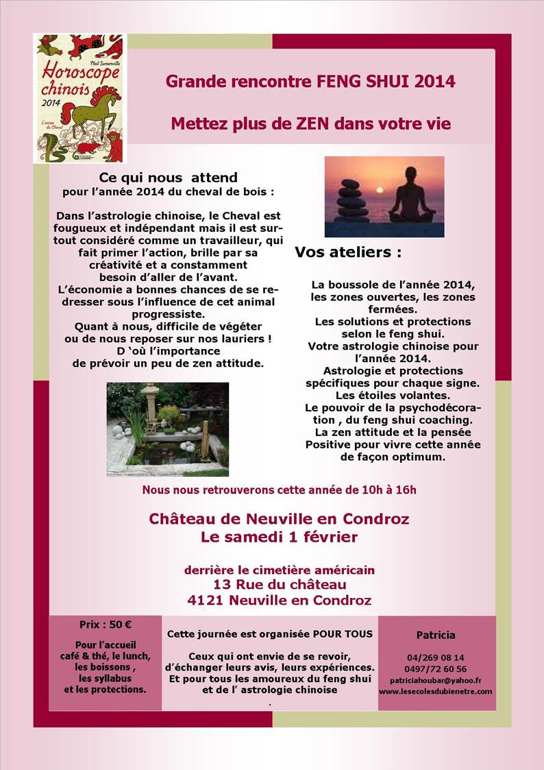 Si vous avez envie de savoir ce que vous réserve 2014 et de bien préparer cette année pour voir booster vos projets, venez vous joindre à nous. Si vous avez envie d’une formation ou d'une consultation n'hésitez pas à nous contacter. Bien amicalement, de la part de Patricia et de l’équipe des écoles du bien-être.