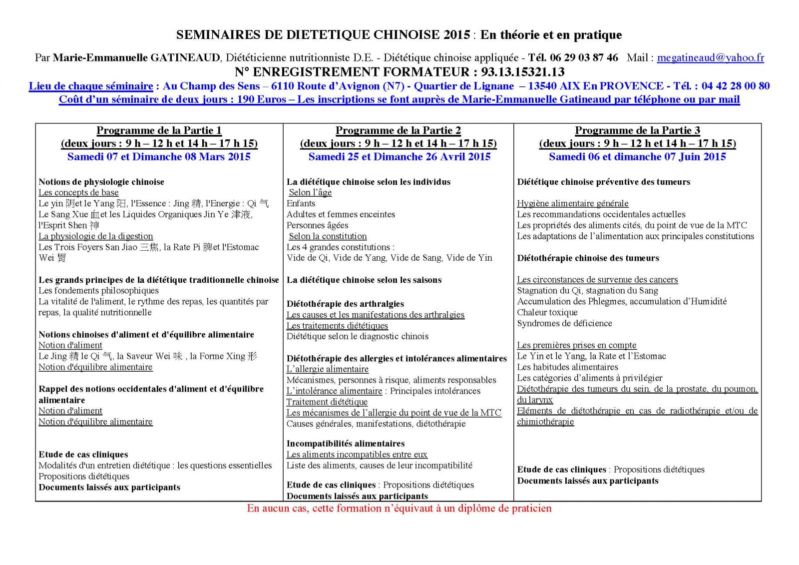 ‐ les différents traitements de médecine traditionnelle chinoise.